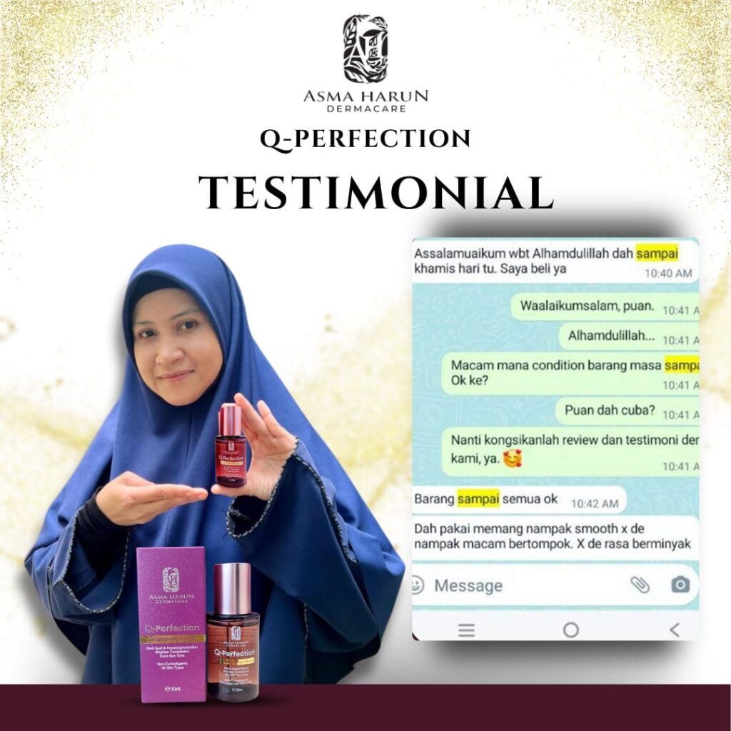 Produk ini bukan sekadar untuk dijual, tapi benar-benar menjadi ikhtiar penjagaan kulit harian Ustazah sendiri.