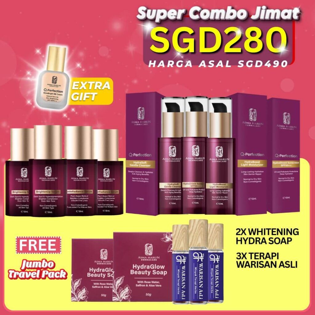 Setiap produk dalam Asma Harun Dermacare direka untuk melengkapi antara satu sama lain – dari pencuci, pelembap, serum hingga ke pelindung matahari – supaya kulit anda mendapat penjagaan menyeluruh.